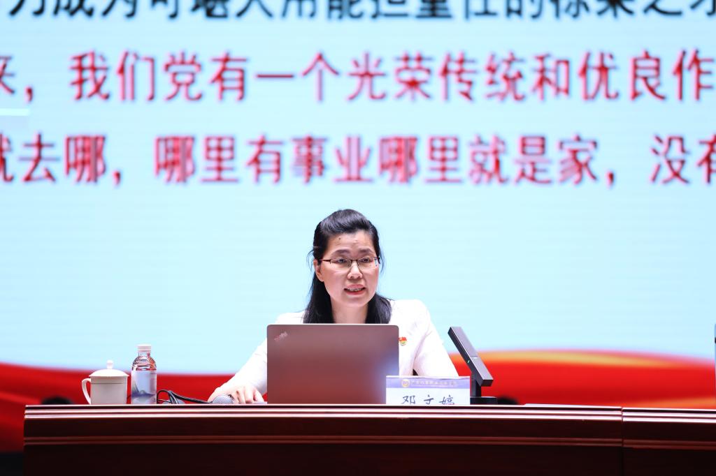 报告会上,邓文婷以《深入贯彻落实中央八项规定精神 推进作风建设常态化长效化》为题作专题辅导报告,围绕深入贯彻中央八项规定及其实施细则精神这一主题,从深入学习领会习近平总书记关于作风建设的重要论述、当前需重点把握的“四风”突出问题及其新情况新动向和以有力监督推动作风建设走深走实的经验和做法三个方面作了深入浅出的讲解。报告主题鲜明、内容丰富,既有理论上的分析解读,也有实践上的具体阐释,具有很强的针对性和指导性,为全校党员干部准确理解把握党的作风建设、贯彻落实中央八项规定及其实施细则精神上了一堂精彩的理论辅导课。