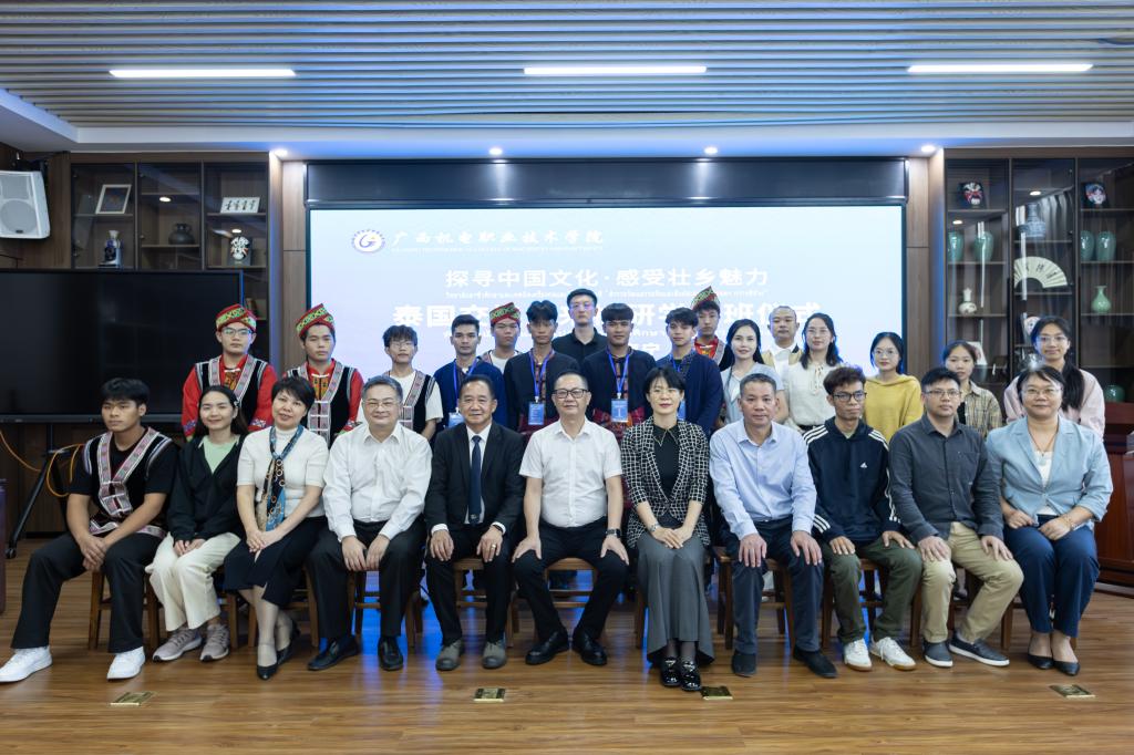 11月5日,泰国东北2区职业教育研究院师生一行7人来到taptap官网,开展为期14天的“探寻中国文化 感受壮乡魅力”主题研学活动。当天下午,学校在国际交流中心举行了泰国师生研学团开班仪式。学校副校长刘捷、泰国东北2区职业教育研究院校长助理普拉木安·罗尼特出席。开班仪式由文化旅游与管理学院院长甘宜沅主持。