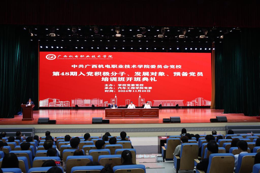 11月26日晚,学校党委党校第48期入党积极分子、发展对象、预备党员培训班开班典礼在弘毅楼大礼堂举行。学校副校长、党委党校校务委员黄振宣、林胜及人工智能学院党委书记、党委党校校务委员黄日木出席了开班典礼。校团委及马克思主义学院负责人、二级学员党委主要负责人、专职组织员、授课教师代表、班主任及377名培训班学员共同参加了开班典礼。