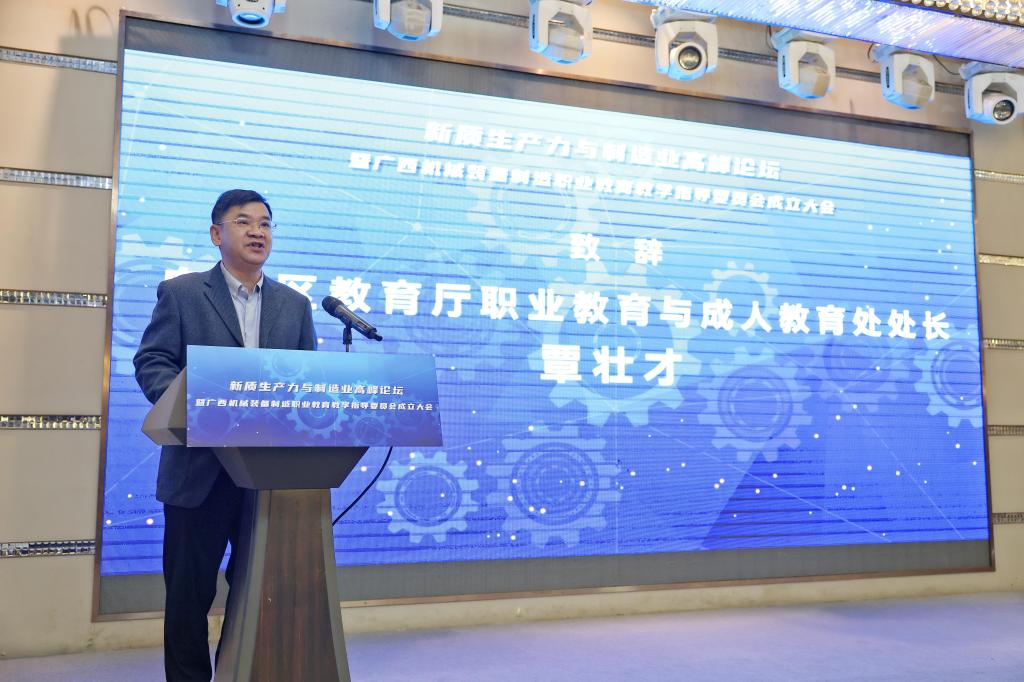 覃壮才在致辞中表示,广西机械装备制造职业教育教学指导委员会的成立,将更好发挥机械行业在职业教育教学和质量提升中的指导作用,顺应产业发展新形势和对技术技能人才培养的新需求,为广西乃至全国的机械装备制造培养更多高素质技术技能人才。自治区教育厅将加大对机械装备行指委工作的支持力度,为后续开展工作提供必要的条件和支持。