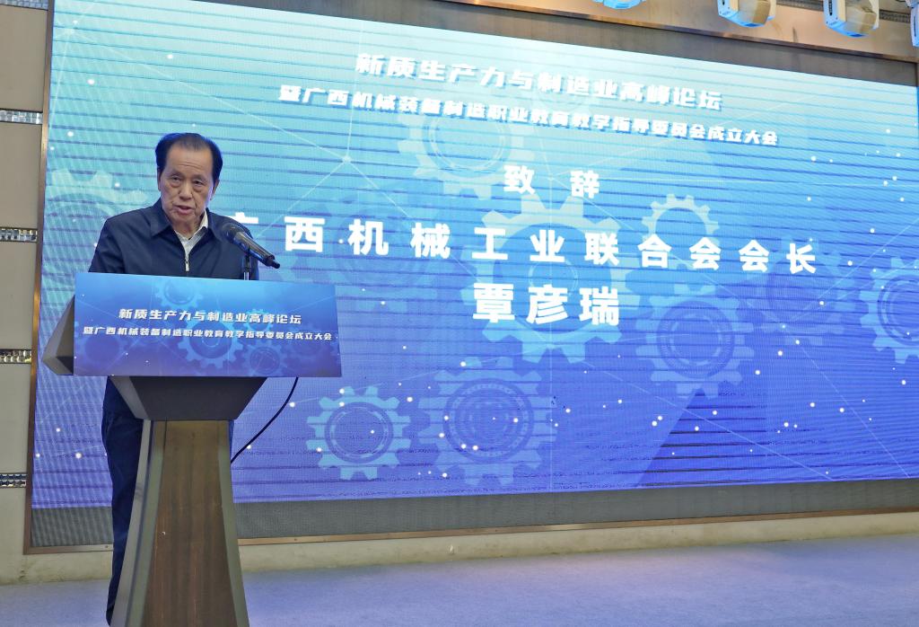 覃彦瑞在致辞中表示,广西机械工业联合会将以机械装备行指委的成立为契机,深化合作,共谋发展,不遗余力地支持机械装备行指委的工作,与各委员单位一起深入探索机械装备制造领域的人才培养新模式,推动教育链、人才链与产业链、创新链的有机衔接。