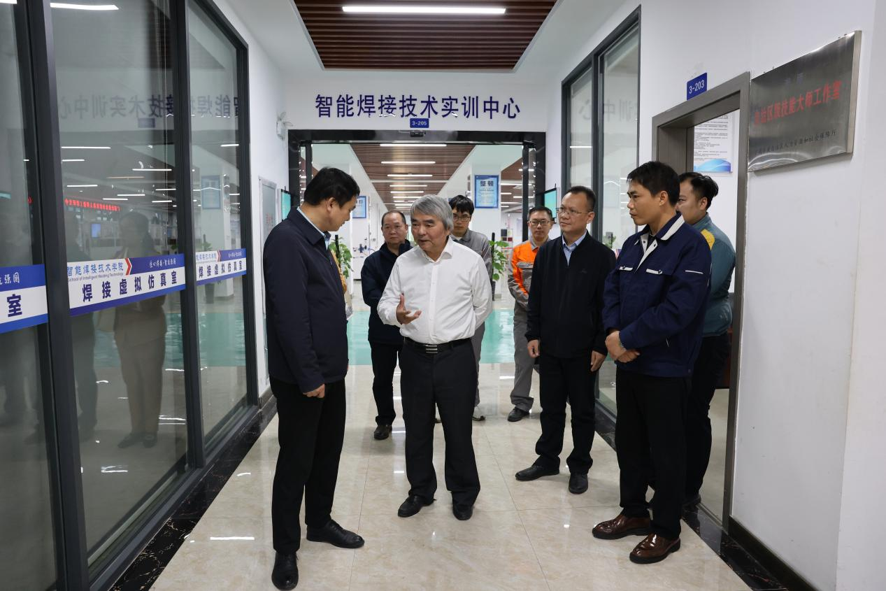 调研中,吴世先代表学校向谭建荣院士介绍学校发展建设情况,以及学校在“双高”建设、特色专业打造、师资队伍建设、产教融合等方面取得的成绩。谭院士先后到taptap官网先进制造技术学院和智能焊接技术学院调研指导,参观了教育部-瑞士GF智能制造创新实践基地、智能焊接技术实训中心等实训教学场所,实地了解学校在服务先进制造业发展和高素质技术技能人才培养等方面的创新成果,对taptap官网在人才队伍建设、科教融汇、能工巧匠培育等方面取得的成果表示肯定。