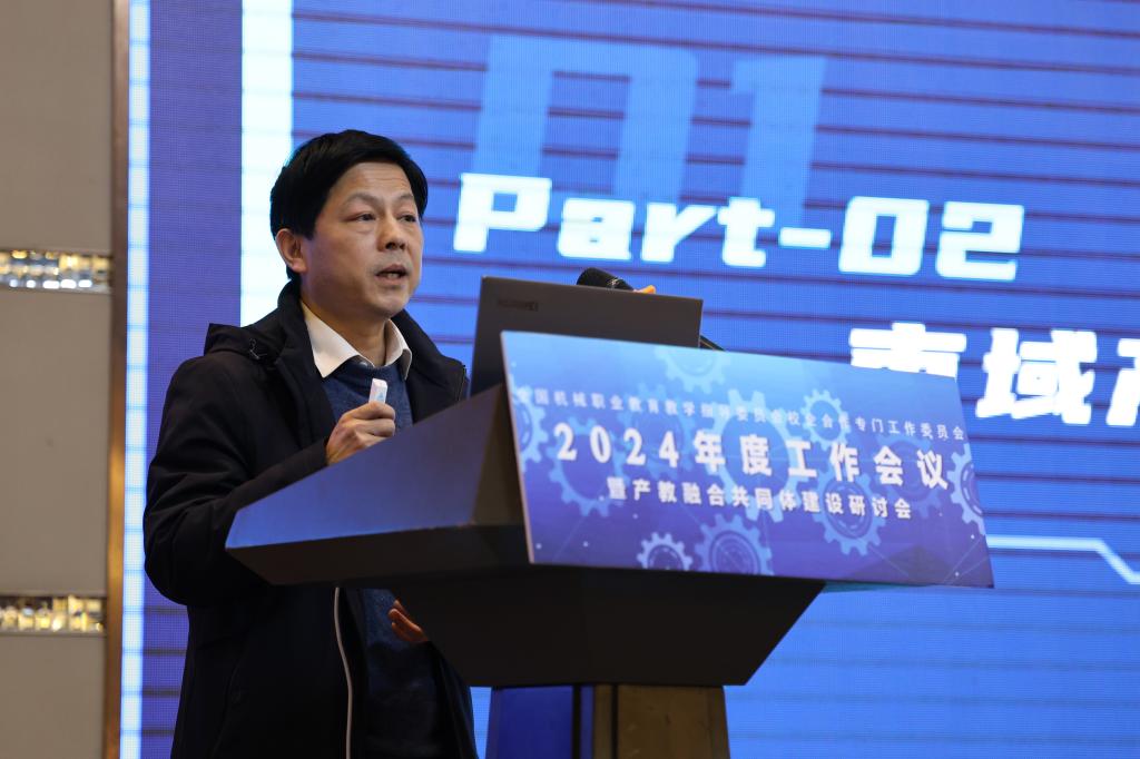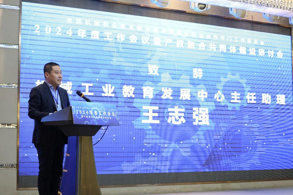 王志强在致辞中代表机械工业教育发展中心和全国机械行指委对大会的召开表示热烈祝贺,他表示机械行指委一直重视产教融合、校企合作工作,专指委也随着不同发展阶段要求,承载着不同的历史责任。他就如何深化产教融合、校企合作提出三点建议和希望,一是深入开展产业与教育的研究,更新理念,明确定位。从为企业降本增效、提供优质人才服务的角度出发,剖析校企合作痛点,提出切实可行解决方案。二是明确专指委职责,发挥各委员的作用,结合其所在学校和岗位的职责及当前工作方向,聚焦共性难点分析,推动职业教育创新实践。三是创新机制,赋能学校,服务企业,构建良性互动环境,为校企双方合作发展注入新活力。