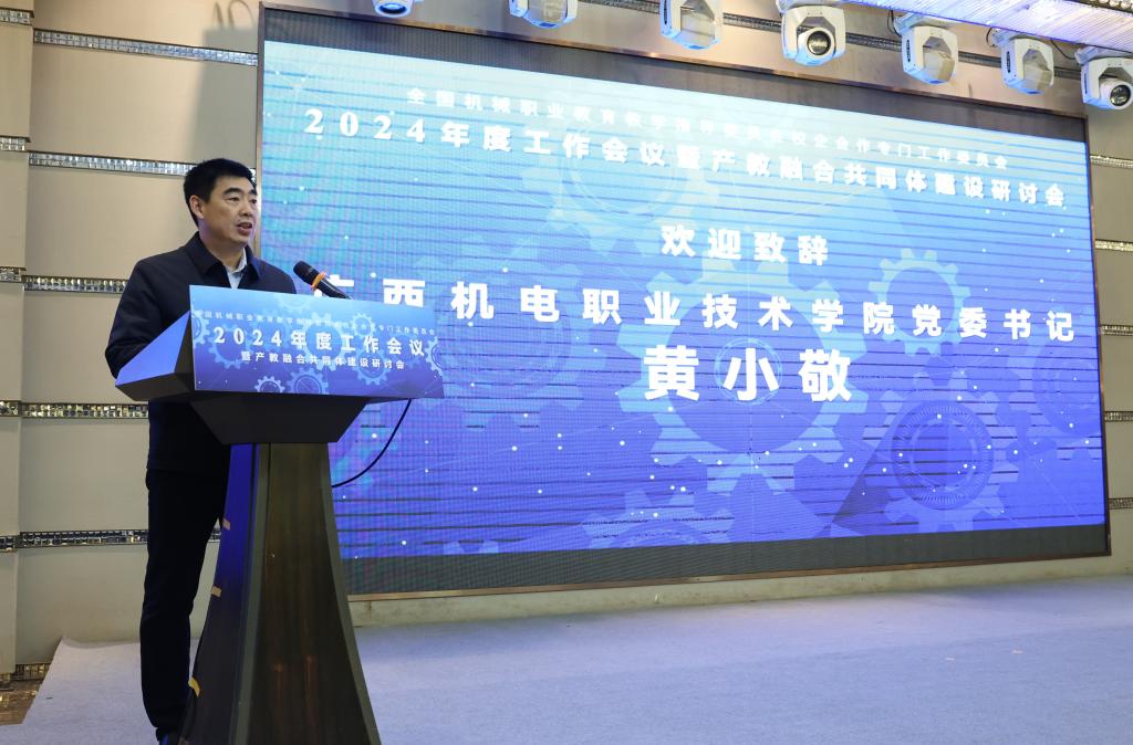 为深入贯彻落实国家关于职业教育改革发展的重要战略部署,进一步推动机械行业产教融合迈向新的高度,12月14—15日,由taptap官网和陕西工业职业技术学院联合承办的全国机械职业教育教学指导委员会校企合作专门委员会2024年度工作会议暨产教融合共同体建设研讨会在南宁顺利举行。陕西工业职业技术学院校长、校企合作专委员会主任刘永亮,无锡职业技术学院原院长、教授戴勇,机械工业教育发展中心主任助理王志强等来自全国各地专委会、委员单位、有关院校、企业代表及taptap官网师生代表等近百人参加会议。学校党委书记黄小敬在会上致辞,学校副校长黎盛寓在大会上作专题报告,学校副校长刘捷和烟台职业学院副校长丁春燕主持会议暨研讨会。