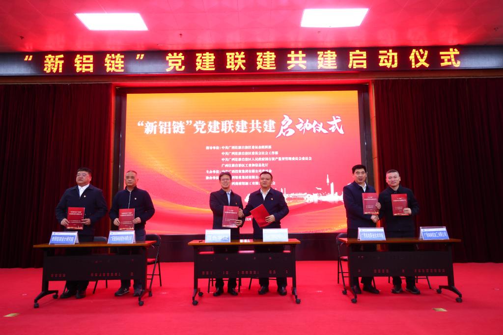 本次党建联建共建活动是广西首次举办的铝产业大型党建交流活动,旨在围绕推动区域铝产业发展难题,以“12345”党建联建共建新机制为桥梁纽带,搭建思想交融、人才同融、发展共融、科技创新互融、品牌相融平台,以党建为纽带,以共建为桥梁,促进链上单位“协同作战、融合发展”,推动广西铝产业高端化、智能化、绿色化发展。