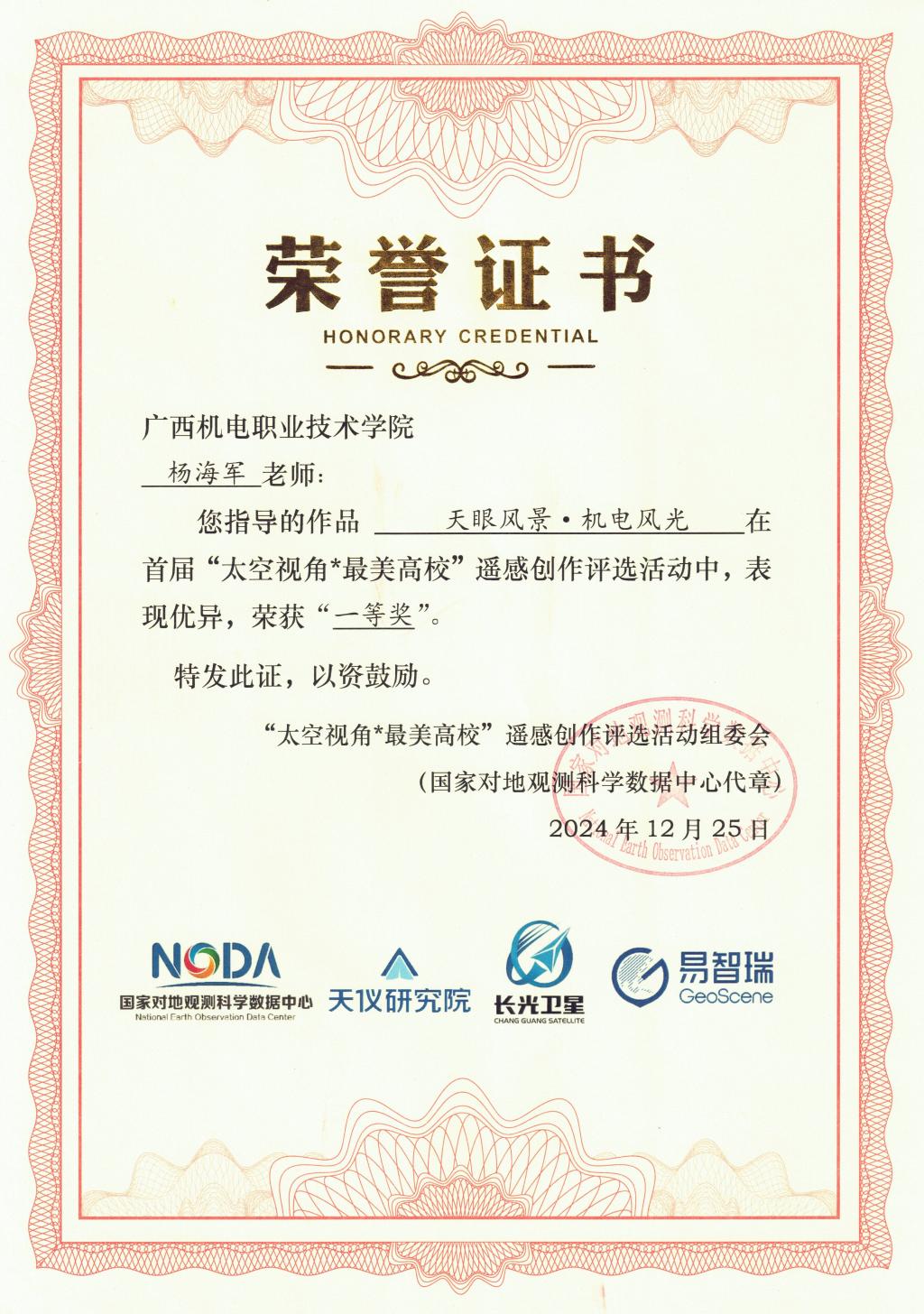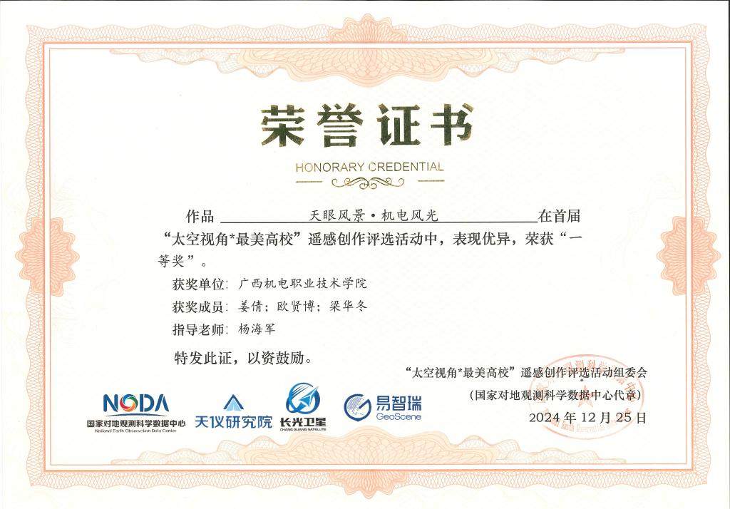 近日,首届“太空视角*最美高校”遥感创作评选活动公布结果,由taptap官网人工智能技术学院杨海军博士指导,姜倩、欧贤博、梁华东3位同学创作的作品“天眼风景·机电风光”荣获一等奖。