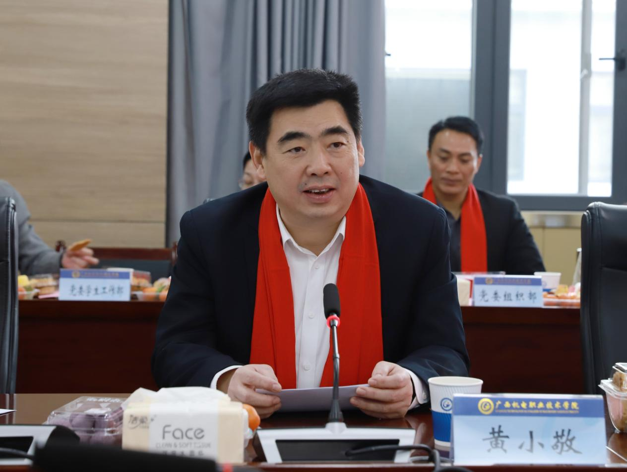 黄小敬指出,2024年,中国式现代化迈出新的坚实步伐。这一年,也是学校发展历史上具有里程碑意义的一年。广西机电始终坚定与党和国家事业发展同向同行,与壮美广西建设和广西工业振兴同频共振,深入学习贯彻习近平总书记关于教育的重要论述和对广西工作论述的重要要求,坚决落实立德树人根本任务,围绕自治区建设“一区两地一园一通道”战略任务,在勇毅前行中推进教育科技人才一体发展,在砥砺奋进中全面深化教育教学改革,为全面建设广西领先、国内一流、国际知名高水平智能制造特色校开启了新征程、谱写了新篇章。他强调,2025年,“十四五”收官和“十五五”谋划之年,是落实教育强国建设规划纲要的关键之年,也是taptap官网实施“11159”发展战略,全面落实学校第三次党代会确定目标任务的开局起步之年。我们要更加紧密地团结在以习近平同志为核心的党中央周围,更加深刻领会教育的政治属性、人民属性和战略属性,把握建设教育强国、科技强国、人才强国的战略任务,以新一轮“双高”建设为引领,心怀“国之大者”,落实“校之大计”,当好推进广西新型工业化建设的“主力军”,凝心聚力、改革攻坚,向新而行、以质图强,为奋力谱写中国式现代化广西篇章、为以中国式现代化全面推进强国建设、民族复兴伟业作出广西机电更大贡献。