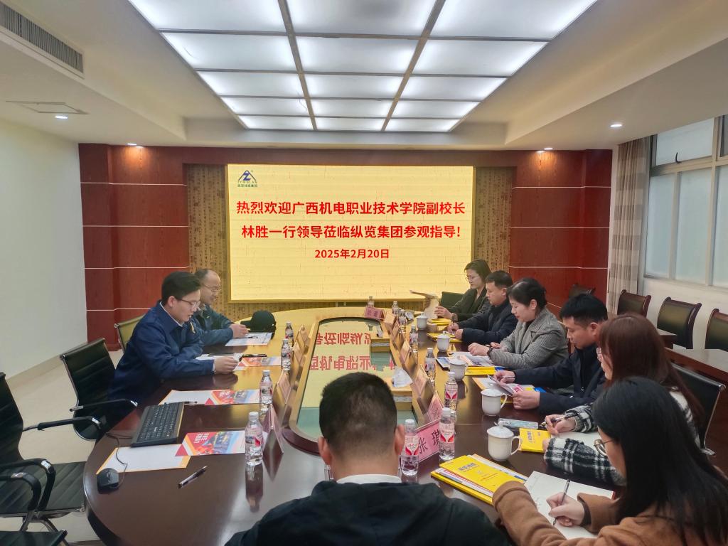 随后,调研组来到广西纵览线缆集团有限公司考察调研, 深入了解电缆制造、新型材料研发、自动化设备操作和科研成果应用。集团常务副总经理陈思源热情接待了调研组一行,并陪同参观了集团公司的成果展厅和生产车间。在座谈交流会上,校企双方围绕人才培养、资源共享、工学交替等方面进行了深入交流探讨,并在实习就业基地建设、订单班培养等方面达成多项合作意向,未来将携手共同培养企业所需的专业化人才,助力taptap官网毕业生高质量就业和人才培养高质量发展。