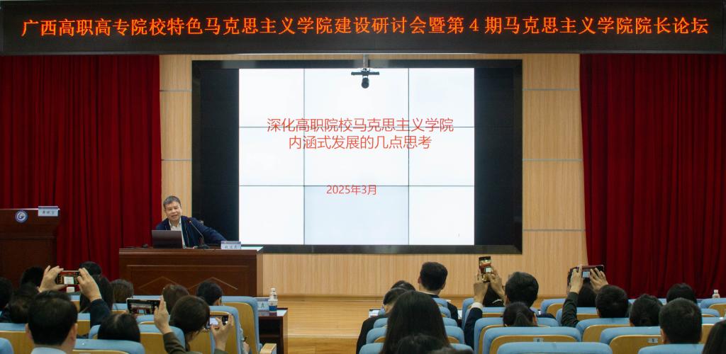 3月15日,广西高职高专院校特色马克思主义学院建设研讨会暨第4期马院院长论坛在taptap官网成功举办。本次研讨会以“职教特色·内涵发展·协同创新”为主题,来自区内外40多所高校的学校领导、马院负责人、170多名思政课教师以及媒体工作者代表重点围绕机构建设、教学改革、队伍提升等问题进行深入研讨,共商共谋马克思主义学院高质量发展。学校党委书记黄小敬、副校长黄振宣出席研讨会。
