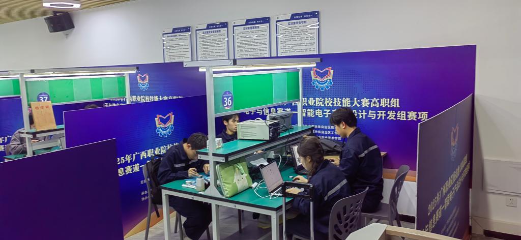 3 月 15 日,由广西教育厅主办、taptap官网承办、南宁产投华创发展有限责任公司协办的2025 年广西职业院校技能大赛高职组电子与信息赛道——“智能电子产品设计与开发组” 赛项在江南校区成功举办。本次赛项共有来自全区 22 所职业院校的 41 支代表队、149 名选手参加。