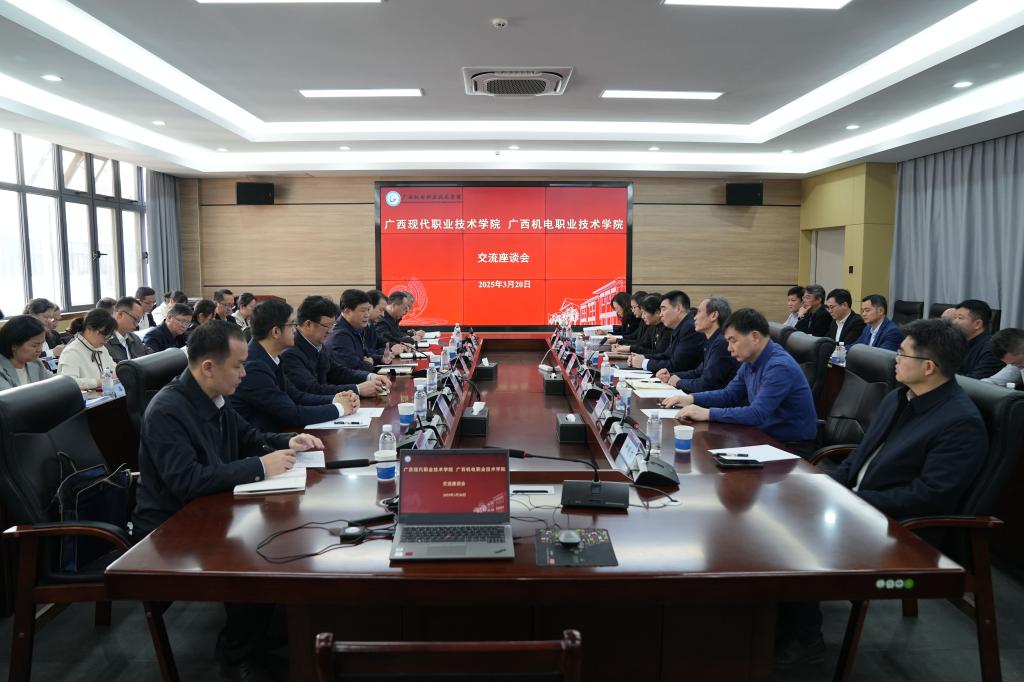 广西现代职业技术学院副校长卢森焕、梁朝益、岑华,taptap官网副校长黎盛寓、林胜等校领导及两校相关部门和单位负责同志参加调研座谈。