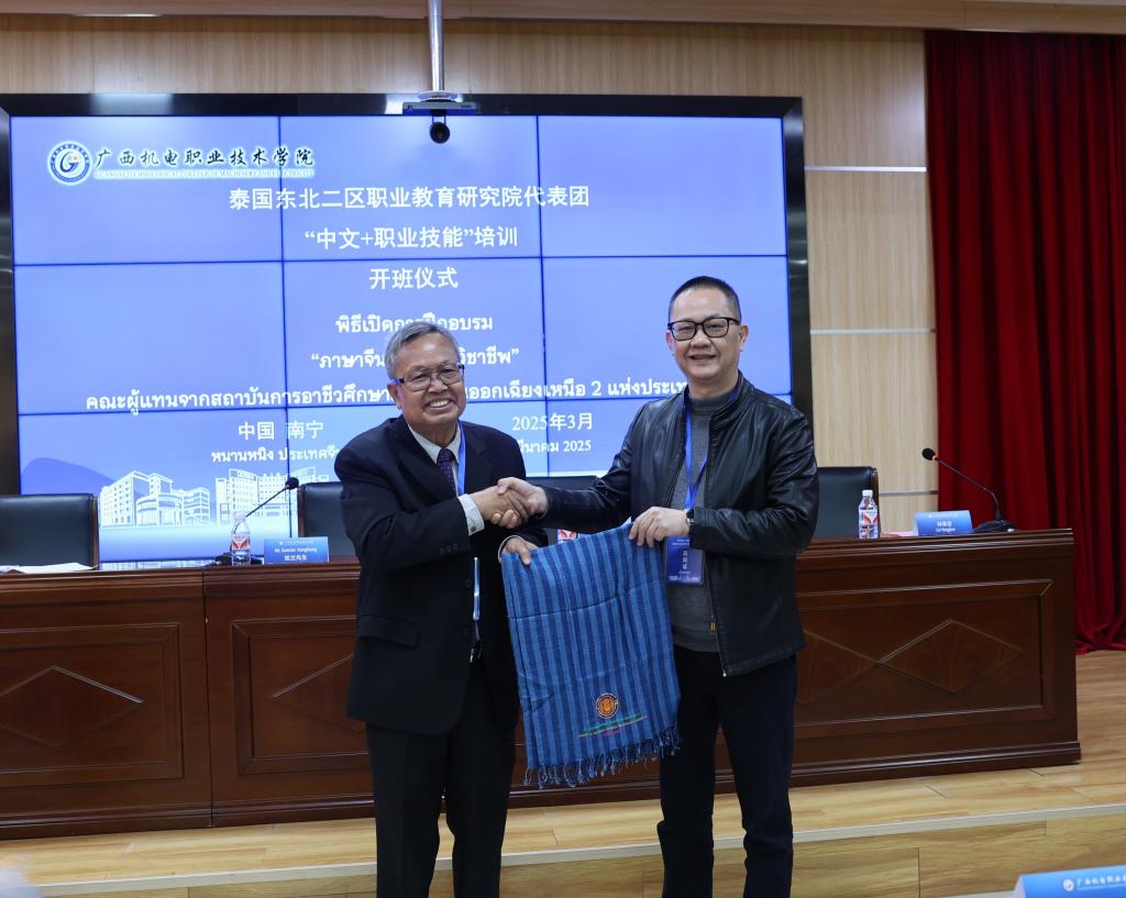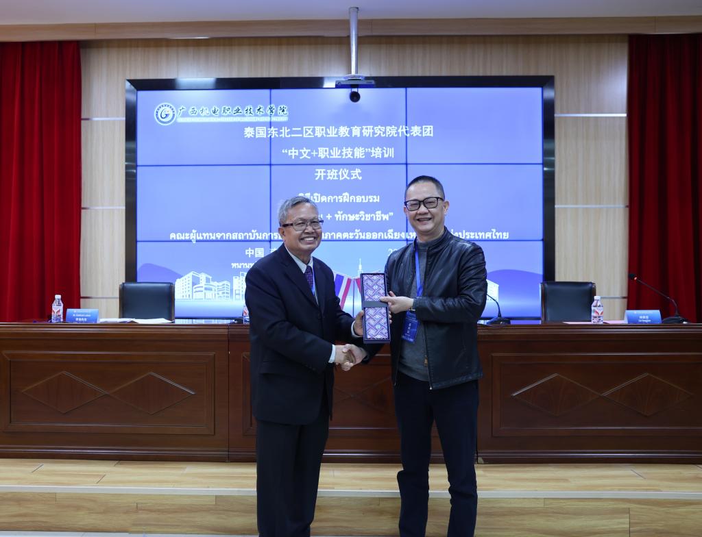 随后,中泰双方代表互赠礼物。这份跨越山海的礼物交换,不仅承载着双方的真挚情谊,更凝聚着对职业教育交流的深切期许。