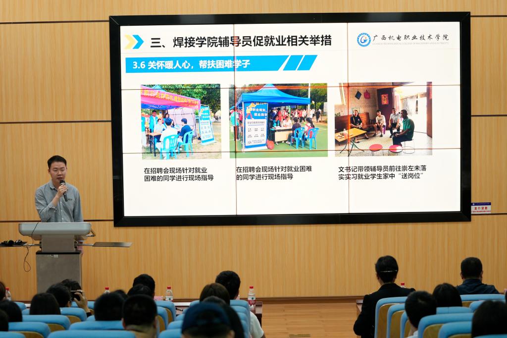 活动开场,智能焊接技术学院专职辅导员郑天罡以《高校辅导员实现高质量就业的实践探究》为题进行专题分享。郑天罡老师结合就业数据剖析当前就业形势,并分享智能焊接技术学院促进学生就业、开展防范就业诈骗教育的相关举措。
