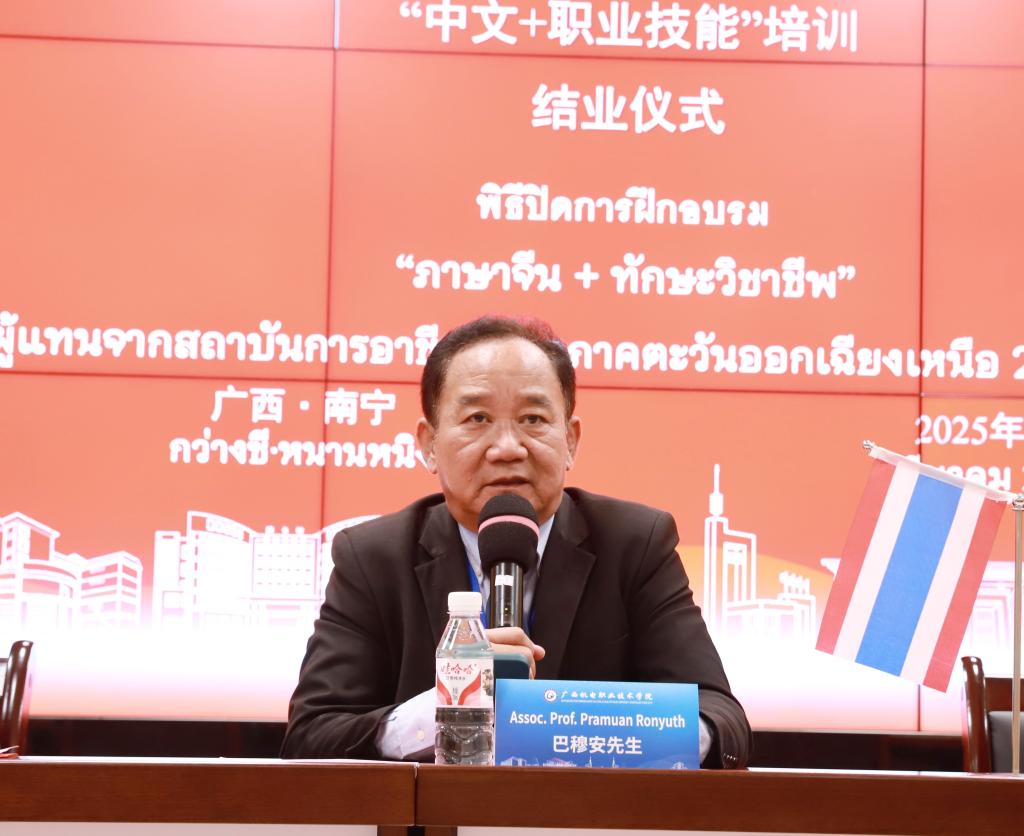 泰国东北二区职业教育研究院院长助理巴穆安先生发言