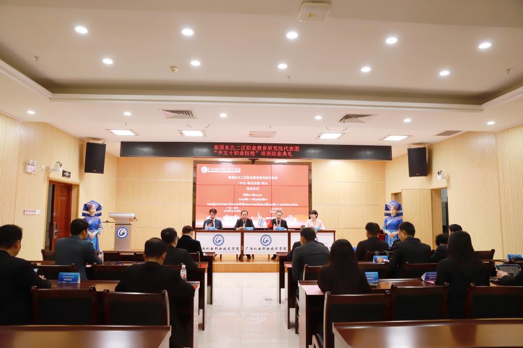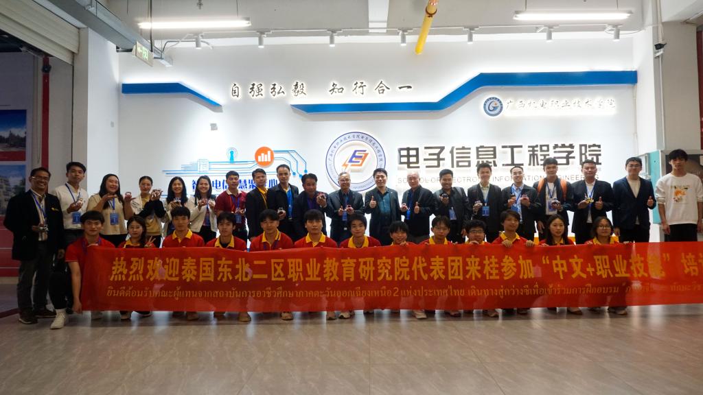 刘捷在致辞中表示,依托学校“理论+实践”双轨教学模式,泰国学员们在电子信息工程学院创新实训室参与机器狗制作,在智能焊接车间学习工业机器人编程、智能焊接等前沿技术,切实感受到理实一体化的“中文+职业技能”培训的赋能效应。同时,学员们通过汉字书写、中华茶艺、非遗扎染、坭兴陶制作等课程,深入体验了中华传统文化。目前,双方已就集成电路技术、新能源汽车技术等专业达成联合培养学生的初步共识,未来将持续推进两国在职业教育领域的合作。