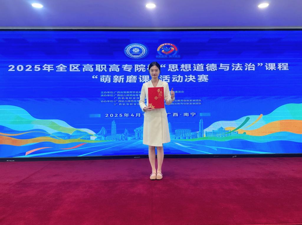 4月18日上午,2025年全区高职高专院校“思想道德与法治”课程“萌新磨课”活动决赛在南宁举行,taptap官网青年教师和帅荣获本次比赛一等奖。