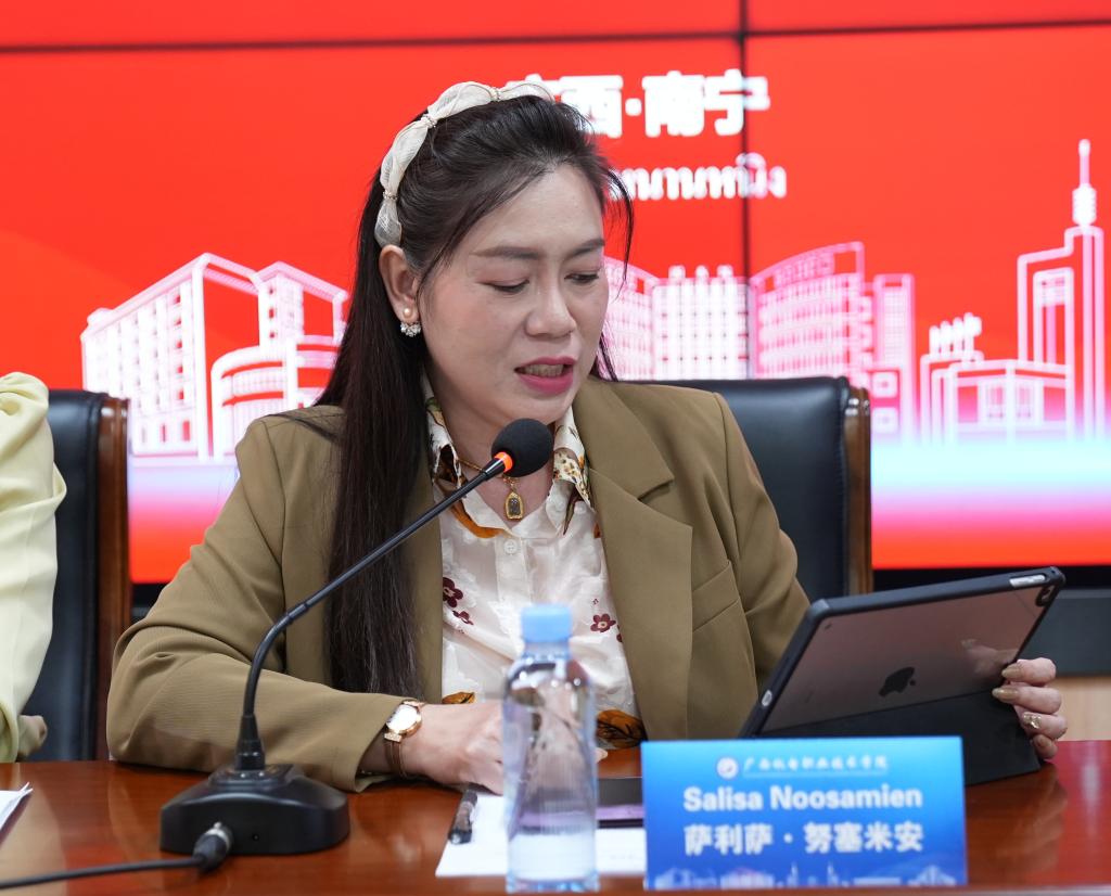 罗勇技术学院教师代表萨利萨·努塞米安发言,她对taptap官网对培训的精心安排表示感谢,参训师生将以良好的精神面貌参加培训,希望此次培训能够成为两校合作的坚实基石,开启双方持续合作的崭新篇章。