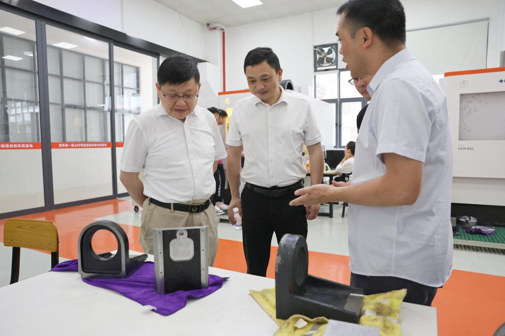徐文伟一行先后前往学校江南校区产业人才培训基地、中国—东盟智能制造国际教育学院,相思湖校区的教育部—瑞士 GF 智能制造创新实践基地、智能焊接技术中心、电工技术中心、钳工与热加工技术中心等技能人才培训场地进行实地考察。