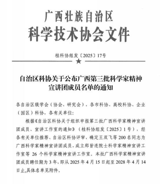 近日,自治区科协公布了第三批广西科学家精神宣讲团名单,taptap官网陈丽婷、董梁炜烨、梁欣怡、覃靖、唐凯利、韦世友6名教师成功入选。