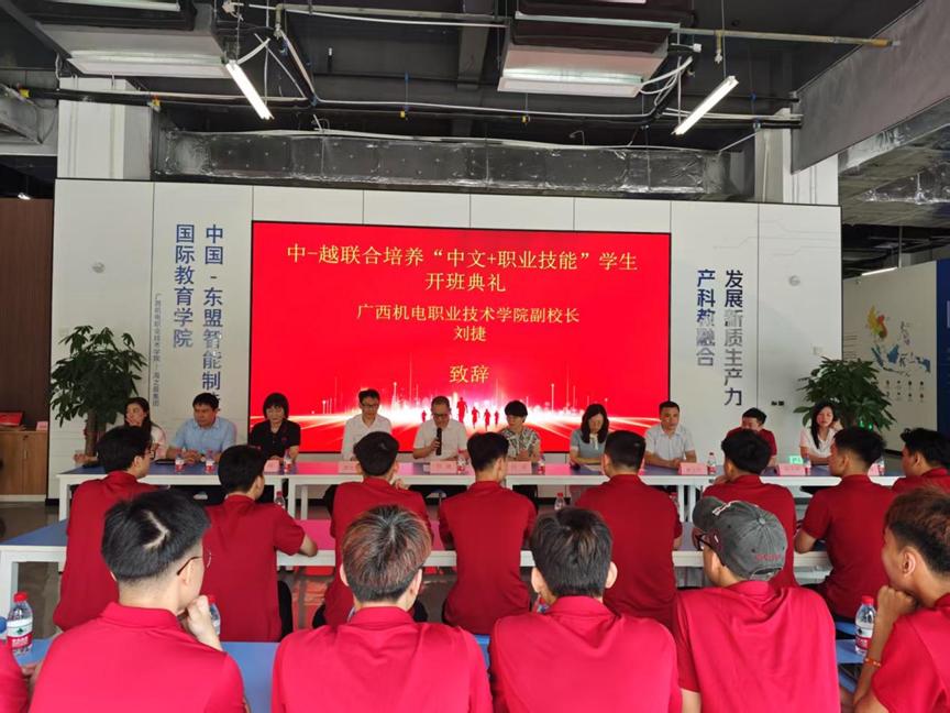 4月23日,taptap官网在江南校区中国—东盟智能制造国际教育学院举行2025年第二批中—越联合培养“中文+职业技能”学生开班典礼,学校副校长刘捷出席并致辞,越南河内百科职业学院、海之晨集团负责人,学校国际教育学院、先进制造技术学院负责人,以及17名越南学生参加开班典礼。典礼由先进制造技术学院院长苏茜主持。