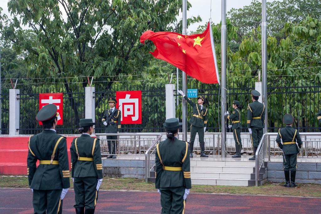5月6日早上,纪念五四运动106周年升旗仪式在相思湖校区田径运动场隆重举行,校党委委员、副校长林胜出席并讲话,各学院党委副书记,学工部、团委干部,辅导员代表,“优秀共青团员”“优秀共青团干部”和新团员等共计1500余人参加。国旗护卫队队员高擎五星红旗,步伐坚定走向升旗台。全场师生庄严肃立,伴随着雄壮的《义勇军进行曲》,鲜艳的五星红旗向着朝阳冉冉升起,全场师生齐声高唱国歌,行注目礼。
