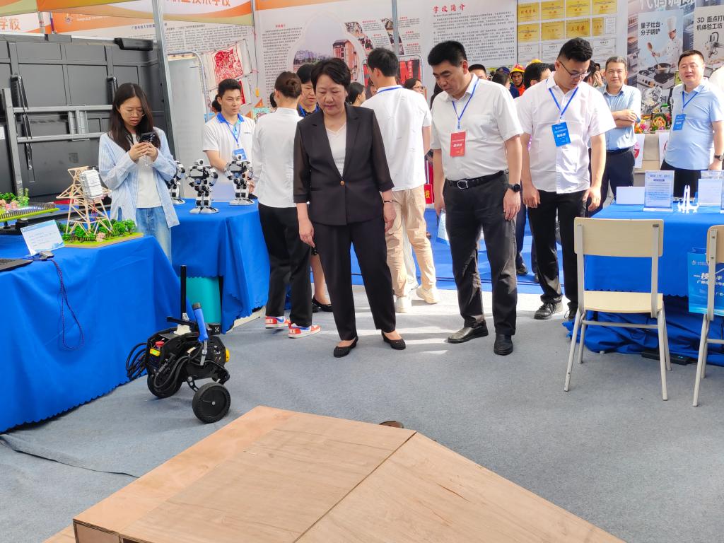 活动期间,taptap官网领导向自治区工信厅和自治区教育厅领导分别汇报了学校在专业建设、教学改革等方面的创新实践。taptap官网落实“人工智能+”战略,深度融入自治区"10+5+4"现代产业体系,聚焦打造智能焊接技术、电子信息等10个高水平专业群,在展区布置环节,通过展板、实物、现场演示等方式呈现学校“机”“电”办学特色,现场展示“机电一号”芯片及应用案例、智能充电机器人、移动智能焊接机器人、Yanshee双足人形机器人等9项作品,充分展现taptap官网职业教育取得的丰硕成果,吸引了众多领导嘉宾、媒体记者、兄弟院校、企业、现场观众等驻足观看、采访、咨询、体验。