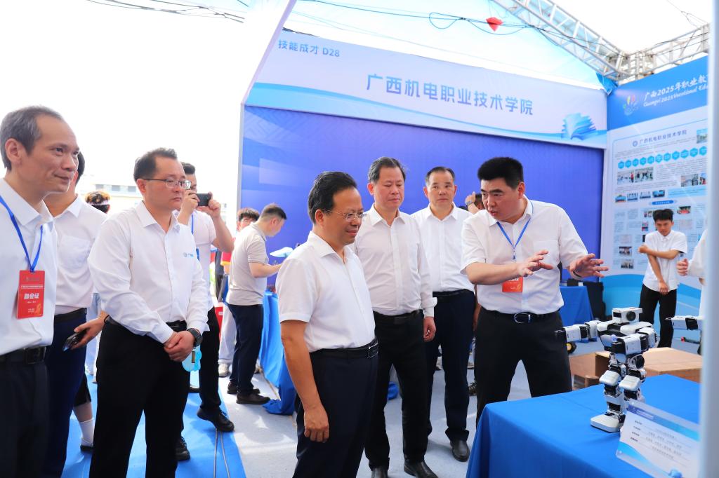 5月14日,广西2025年职业教育活动周启动仪式在广西物流职业技术学院举行。本次活动周以“一技在手,一生无忧”为主题,自治区人民政府副主席廖品琥出席活动并宣布广西2025年职业教育活动周开幕,自治区教育厅副厅长伍锦昌出席活动并致辞,自治区政府副秘书长梁磊主持仪式。taptap官网党委书记黄小敬、副校长黎盛寓率队参加活动。