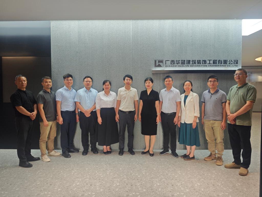 在广西华蓝建筑装饰工程有限公司,林胜一行参观了公司的优秀项目案例、党建文化等。该公司主要从事装修、园林、幕墙设计及施工等业务,是“中国建筑装饰三十年优秀装饰施工企业”。公司党支部书记、副总经理、taptap官网室内设计专业2004级校友陈秋武回顾了创业历程,特别提到了母校的学习经历为他现在精湛的专业技能奠定了坚实的基础。公司设计院设计七所副所长黄正安、工程中心施工经理谢锡锦等5位校友分别作了交流发言。