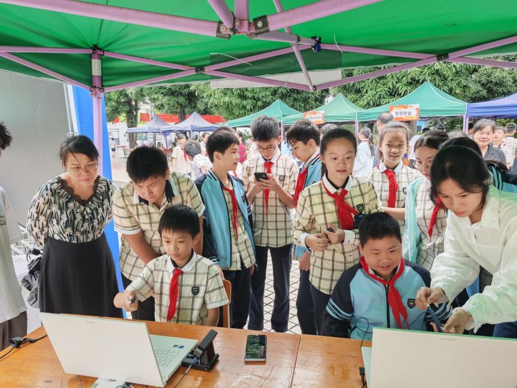 签约仪式后,嘉宾移步红领巾广场,了解科普教育活动开展的情况。青少年们沉浸式体验了裸眼3D、元宇宙AR虚拟交互等前沿技术,进一步领略了科技的魅力与奥秘。在智能机器人展示区,人形机器人通过舞蹈表演、任务协作等互动形式,生动展现了人工智能的应用场景,唤起了青少年对编程与机器人技术的浓厚兴趣。在航天科技探索区,特别设置了航模制作体验课,激发了青少年的探索精神与爱国情怀。在科学小集市上,来自taptap官网人工智能技术学院师生创作的智能AI农业系统项目以及电子科技协会展示的创意作品吸引了众多家长、青少年驻足观看和参观体验,这些充满创意和科技含量的作品,不仅展示了taptap官网师生的创新能力,也为青少年们拓宽了科学视野,感受到了科技与生活的紧密联系,引燃了对科学探索的热情和创造力。