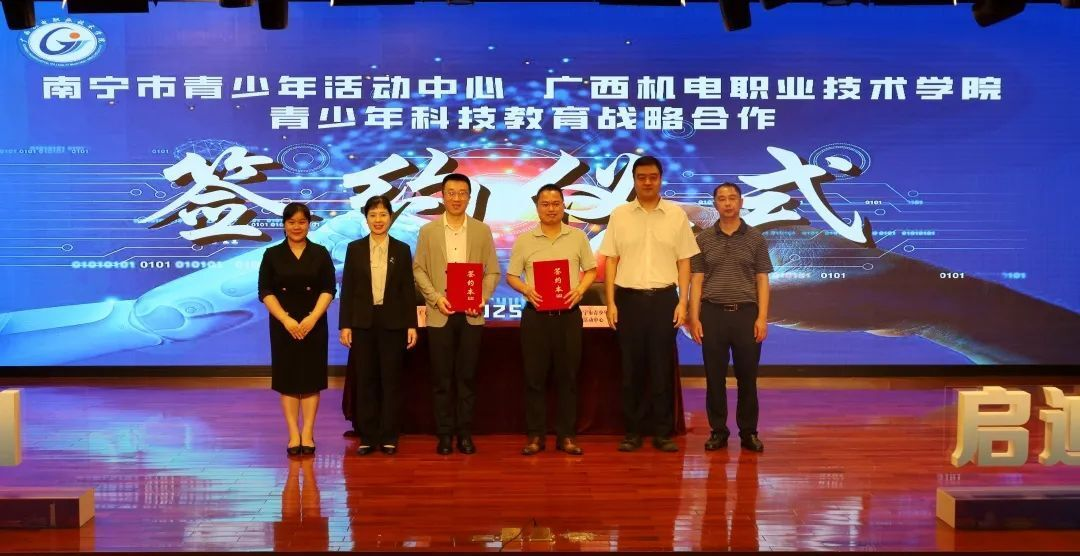 陈珉在致辞中充分肯定了此次合作对于青少年成长以及科技创新战略的重要意义。林胜在致辞中指出,此次与共青团南宁市委员会以及南宁市青少年活动中心的深度合作是一场意义非凡的“双向奔赴”,将为青少年科普教育开启崭新的篇章。签约合作以及校外实践基地、科技研学基地的挂牌,将打通“高校资源共享、基础教育提升”的双向通道,使高校的教育科研成果有效转化为青少年触手可及的科普资源,为职业教育开辟“实践育人”的新路径,为青少年的全面发展提供更广阔的空间和更丰富的资源。