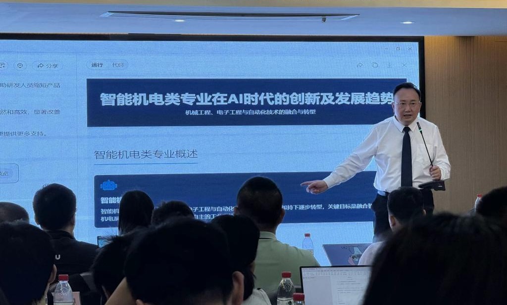 陈三明教授进行“AI技术赋能课程开发+AI技术赋能项目申报”的授课