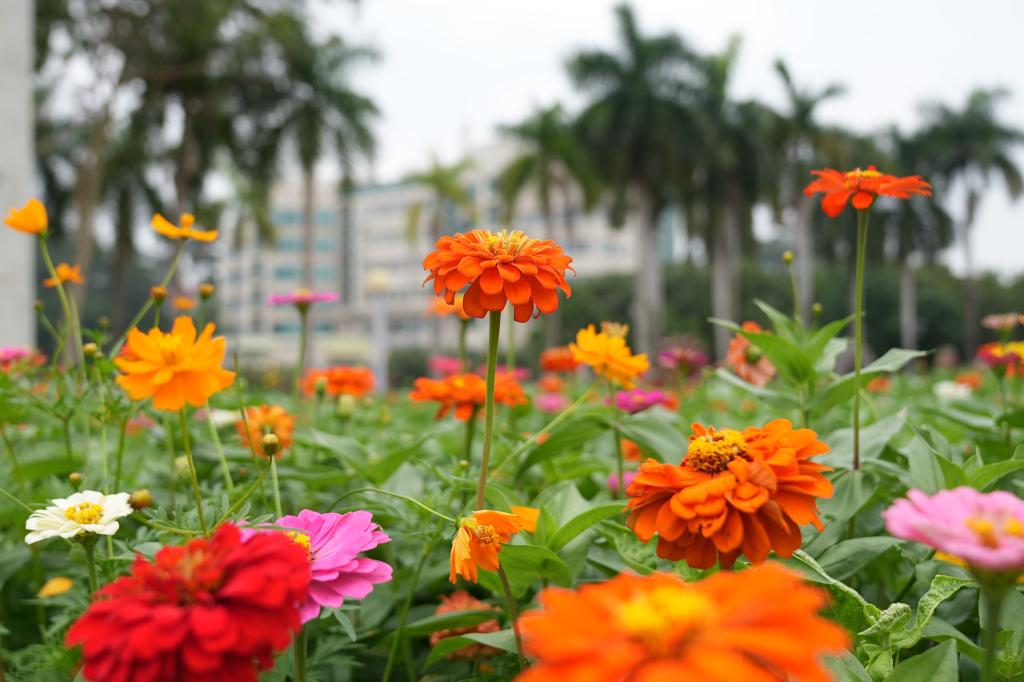 近日,taptap官网相思湖校区第五教学楼前的花田迎来了盛花期,百日菊与格桑花交相辉映,构成了一片色彩斑斓的花海,吸引众多师生驻足欣赏、拍照打卡。