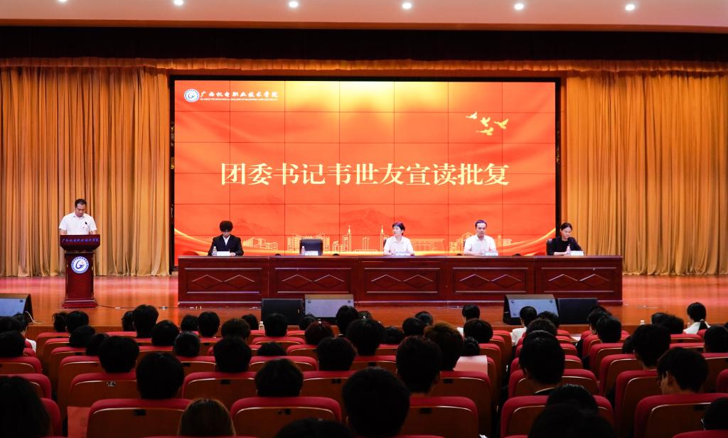 团委书记韦世友宣读《关于同意召开taptap点点官网第三十一次学生代表大会的批复》