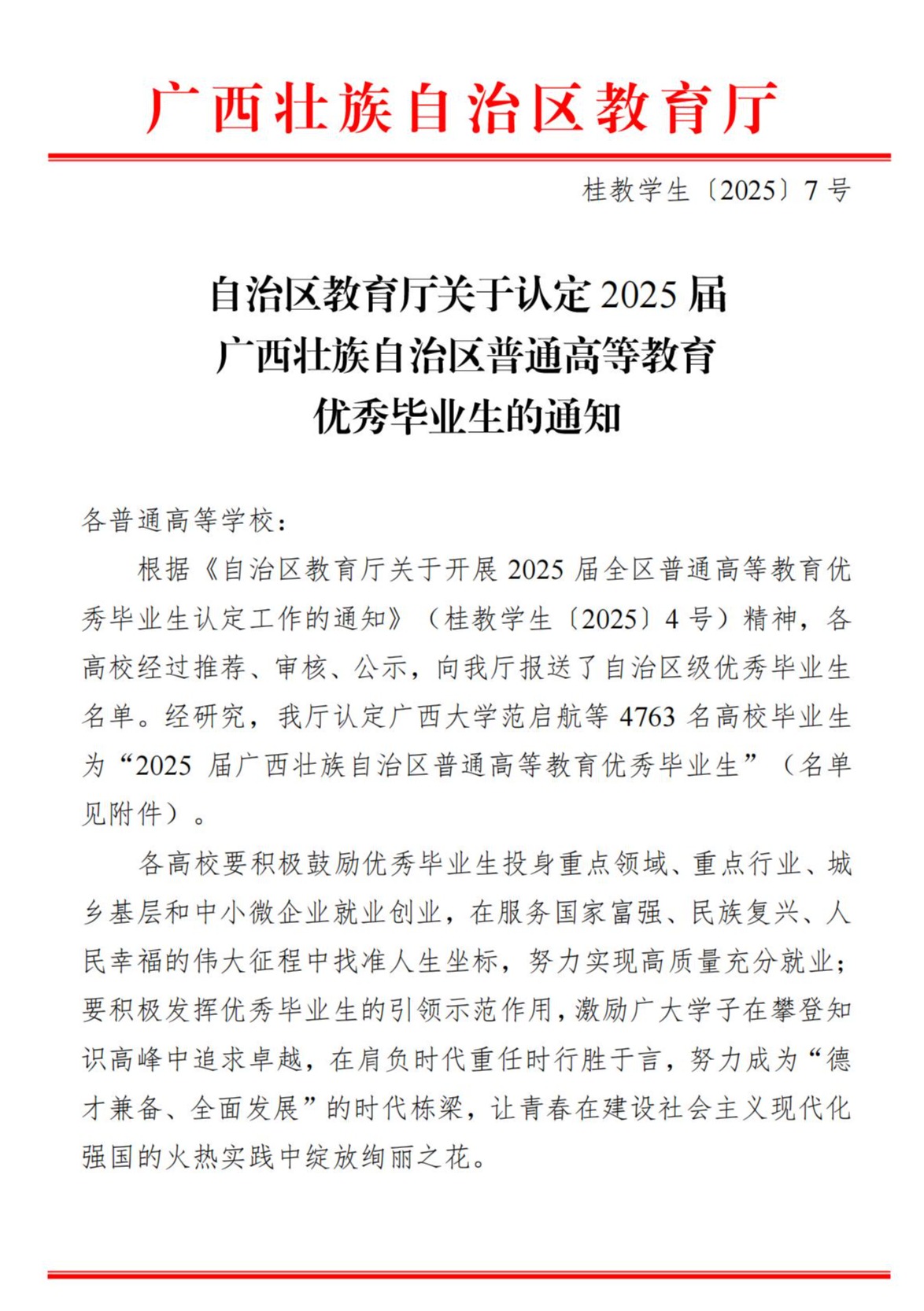 近期,广西壮族自治区教育厅公布了2025届广西壮族自治区普通高等教育优秀毕业生的认定结果,taptap点点官网共有92名学生凭借优异的学业成绩、突出的综合素质和良好的道德品质获得此项殊荣!让我们向这些同学们表示热烈的祝贺!