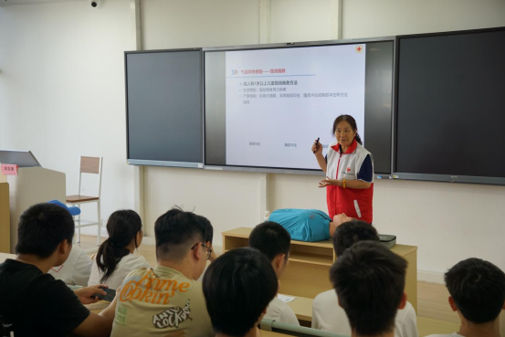 为提升广大师生的应急救护、防溺水等知识技能,增强安全意识、危机意识、社会责任意识,6月13日下午,电子信息工程学院、人工智能技术学院携手南宁市江南区红十字会、沙井街道以及华南社区,在学校江南校区举办应急救护与防溺水知识技能培训专场活动。江南区红十字会资深急救专家梁克清医生受邀担任主讲,电子信息工程学院、人工智能技术学院师生代表及华南社区代表150多人参与培训。