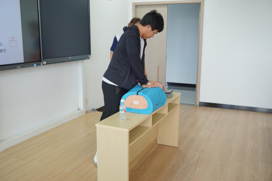 为了让技能落地,活动设分组实操与一对一指导环节。现场配备了心肺复苏模拟人和AED训练机等道具,由江南区红十字会培训团队全程指导。在心肺复苏演练、气道异物梗阻和AED实操中,团队针对学员的动作不规范问题进行重点指导,确保学员掌握要领。