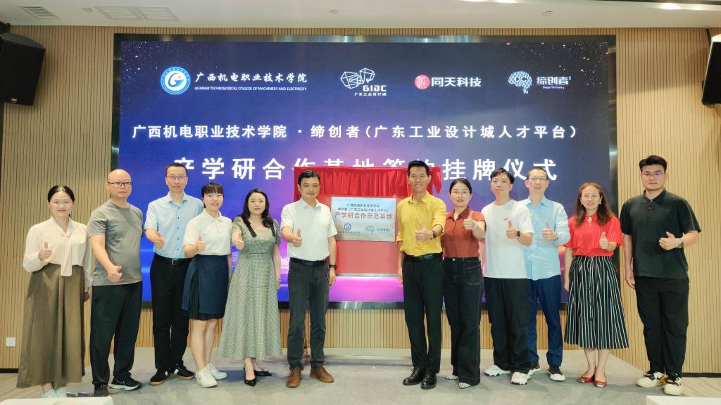 在广东工业设计城,调研组深入参观了创新科技馆、知名设计机构等核心区域,详细了解了设计城的创新成果与产业布局。校企双方围绕人才培养、技术攻关、项目研发、实习就业等关键议题进行了深入交流。双方在合作内容、运行机制及未来发展规划等方面达成了广泛共识,明确了未来合作的方向与重点,双方还举行了“产学研合作基地”揭牌仪式。