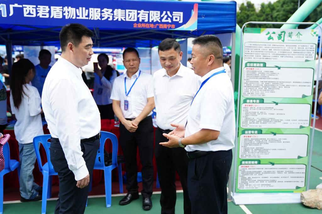 在崇左市招聘专区,校领导一行深入调研,详细了解新兴技术岗位的核心能力要求、薪酬体系设计、职业发展通道等关键信息,并认真查阅毕业生简历投递情况。在与企业的交流中,校企双方围绕企业人才需求、专业课程设置、实践教学改革等方面展开深入探讨。