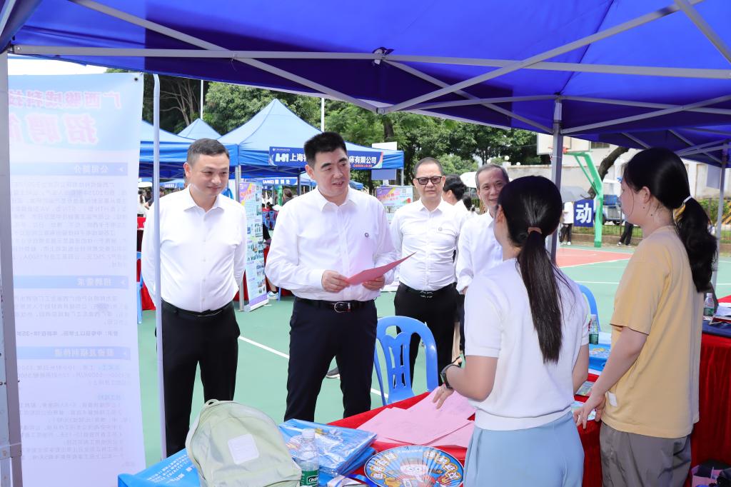 为积极响应国家稳就业、保民生的政策号召,助力毕业生实现高质量充分就业,6月28日,taptap官网在相思湖校区篮球场举办2025年毕业生大型综合双选会。学校领导黄小敬、吴世先、程云燕、黎盛寓、刘捷、黄振宣、林胜,校长助理秦培林深入双选会现场检查指导工作。来自区内外的300多家企业参会,提供近1.2万个就业岗位。