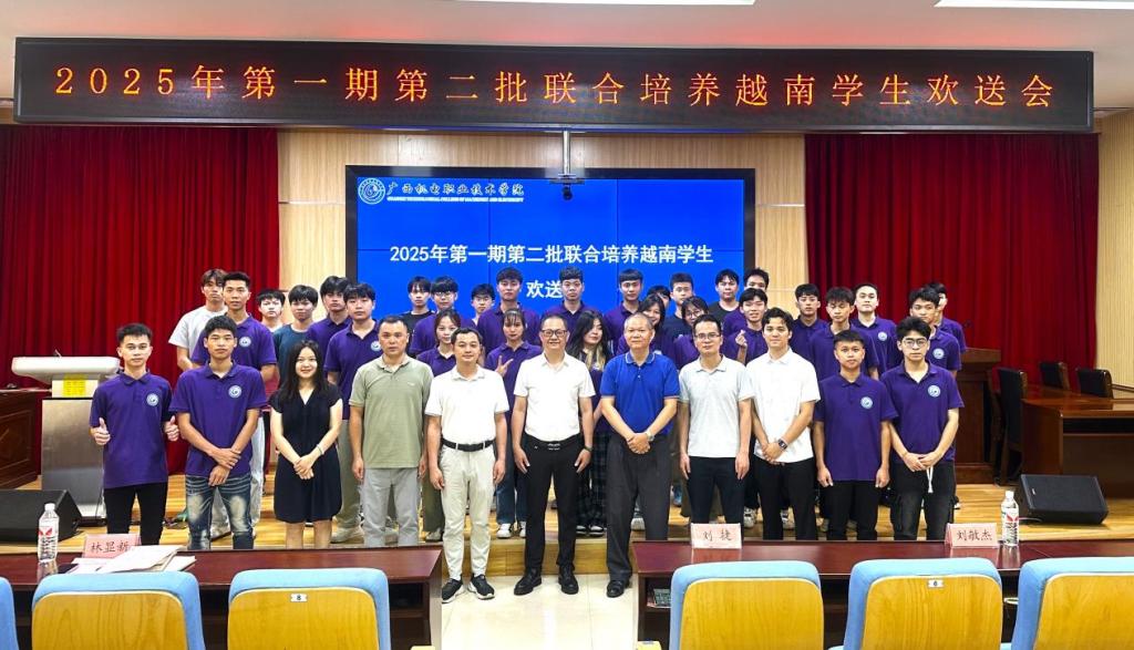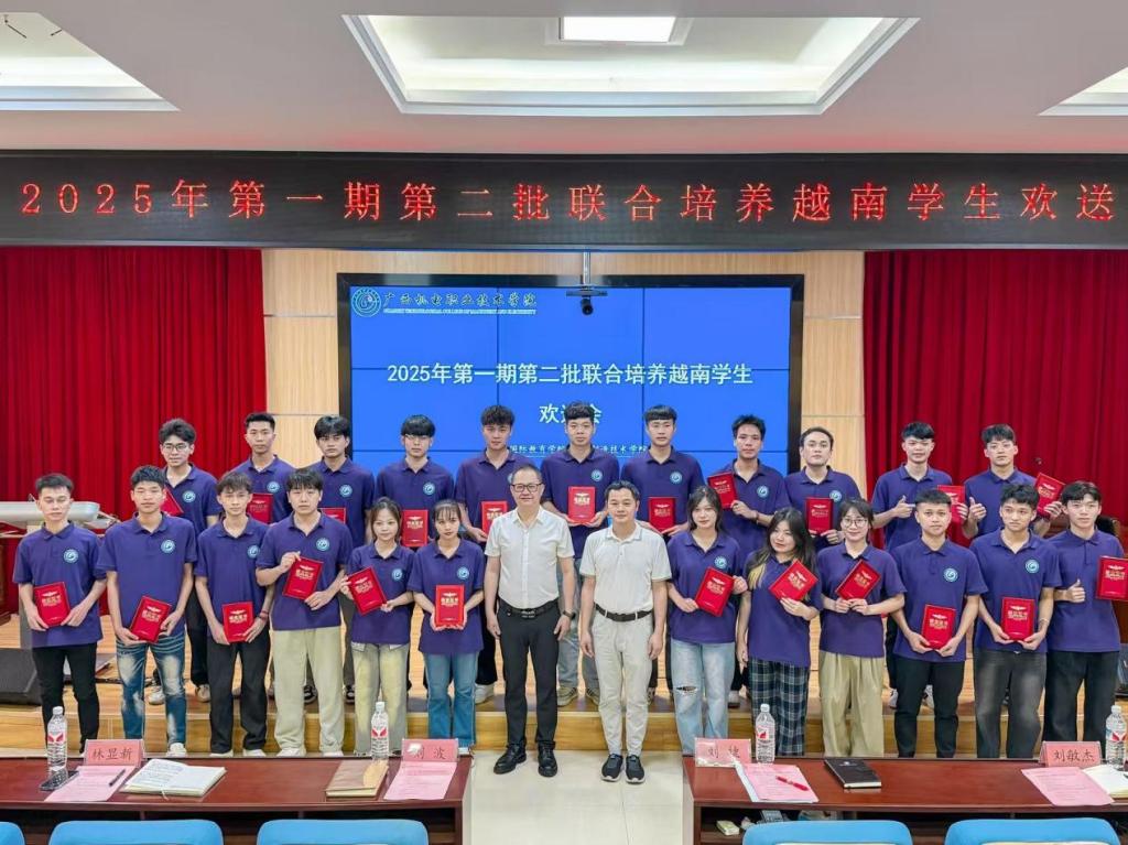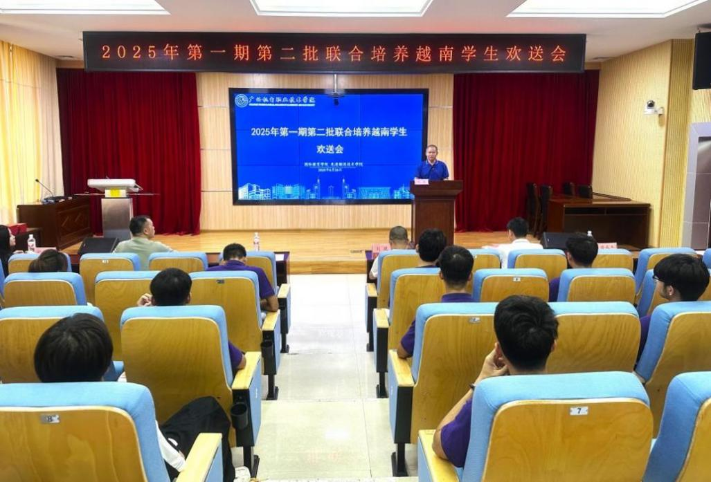 6月26日下午,taptap官网为2025年第一期第二批23名中越联合培养项目的越南学生举行隆重结业典礼暨欢送会,学校党委委员、副校长刘捷,先进制造技术学院党委书记、副院长刘波,国际教育学院副院长刘敏杰及师生代表40多人参加了会议。欢送会由刘波主持。