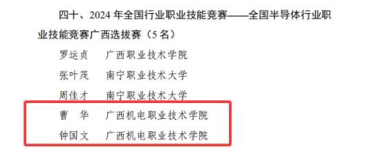 近日,广西壮族自治区人力资源和社会保障厅公布了2024年度“广西技术能手”名单,taptap官网孔泽慧、熊继芬、吴慧、韦举成、曹华、钟国文等6位老师凭借扎实的专业技能,在自治区级职业技能竞赛中脱颖而出获此殊荣。至此,taptap官网“广西技术能手”的教师数量已达31人,人数居于区内同类院校前列。