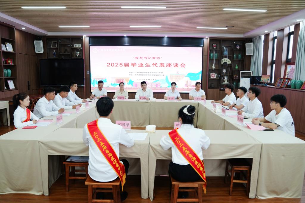 以往“我问你答”的模式被打破,10名来自各二级学院的毕业生代表带着对未来的憧憬、现实的困惑和对母校的深情,抛出了一个又一个真诚而犀利的“考题”:“书记,我创业的产品想打进东盟市场,该怎么入手?”“退伍复学毕业后,深造和就业该怎么选?”“宿舍升级改造的规划能透露吗?学弟学妹们很期待!”……从踌躇满志的创业青年寻求国际市场开拓的锦囊妙计,到面临人生十字路口的退伍军人毕业生寻求生涯规划的建议;从关注专业竞赛资源对接的“竞赛达人”,到心系学弟学妹生活条件改善的“贴心学姐”……问题涉及个人发展、学校建设、社会责任的方方面面。