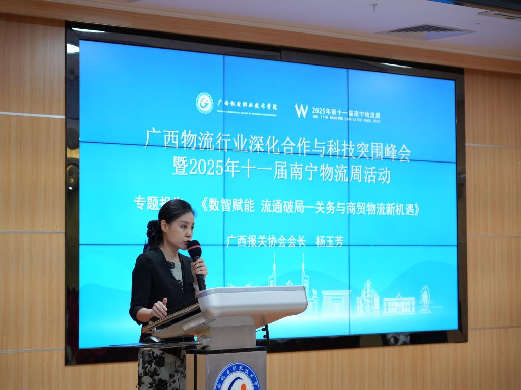 广西报关协会会长杨玉芳聚焦《数智赋能 流通破局——关务与现代商贸物流新机遇》,揭示了智能关务系统对传统流程的颠覆。她提出“证书褪色,能力为王”的观点,建议学生们掌握区块链、人工智能等前沿技术,提升自身的综合竞争力。