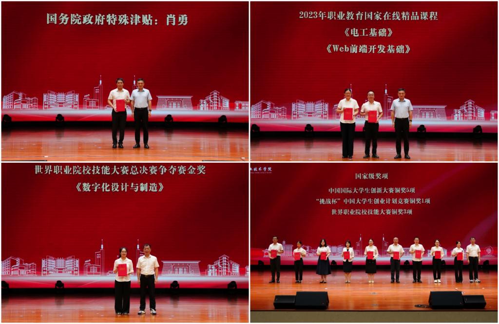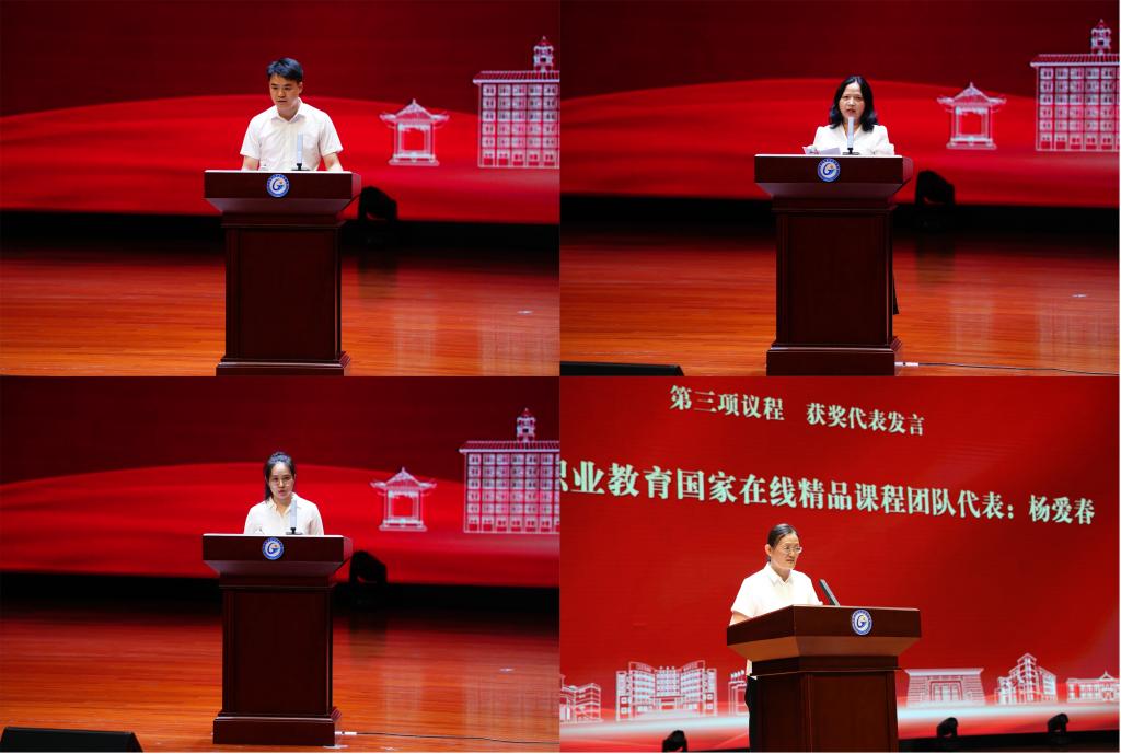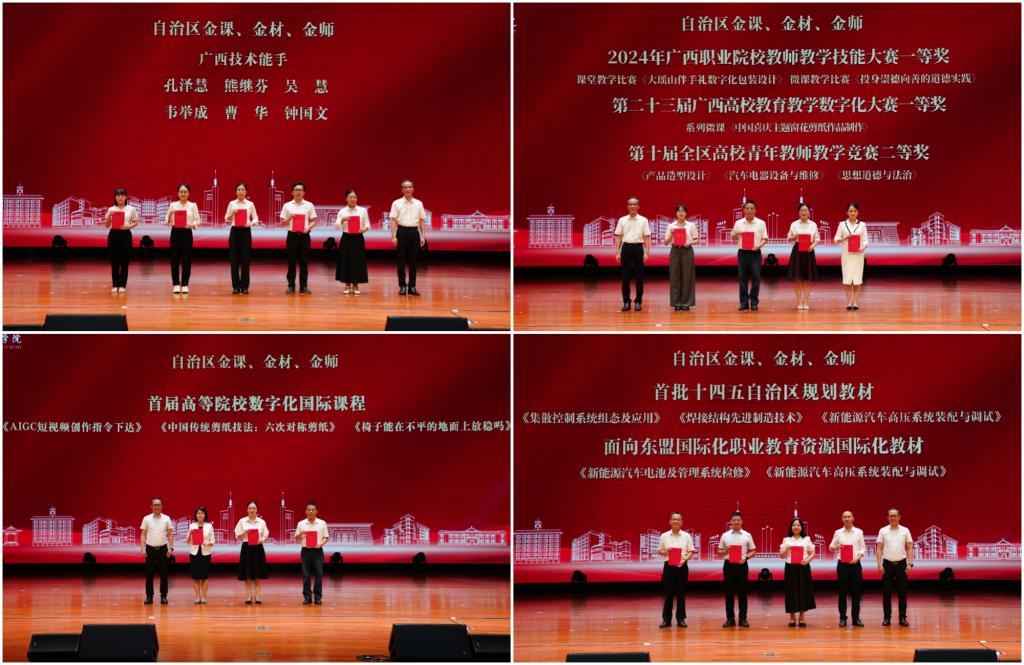 大会对在教学质量年启动一年来校级金师,自治区金课、金材、金师和人才培养质量国家级奖项获得者进行了表彰。