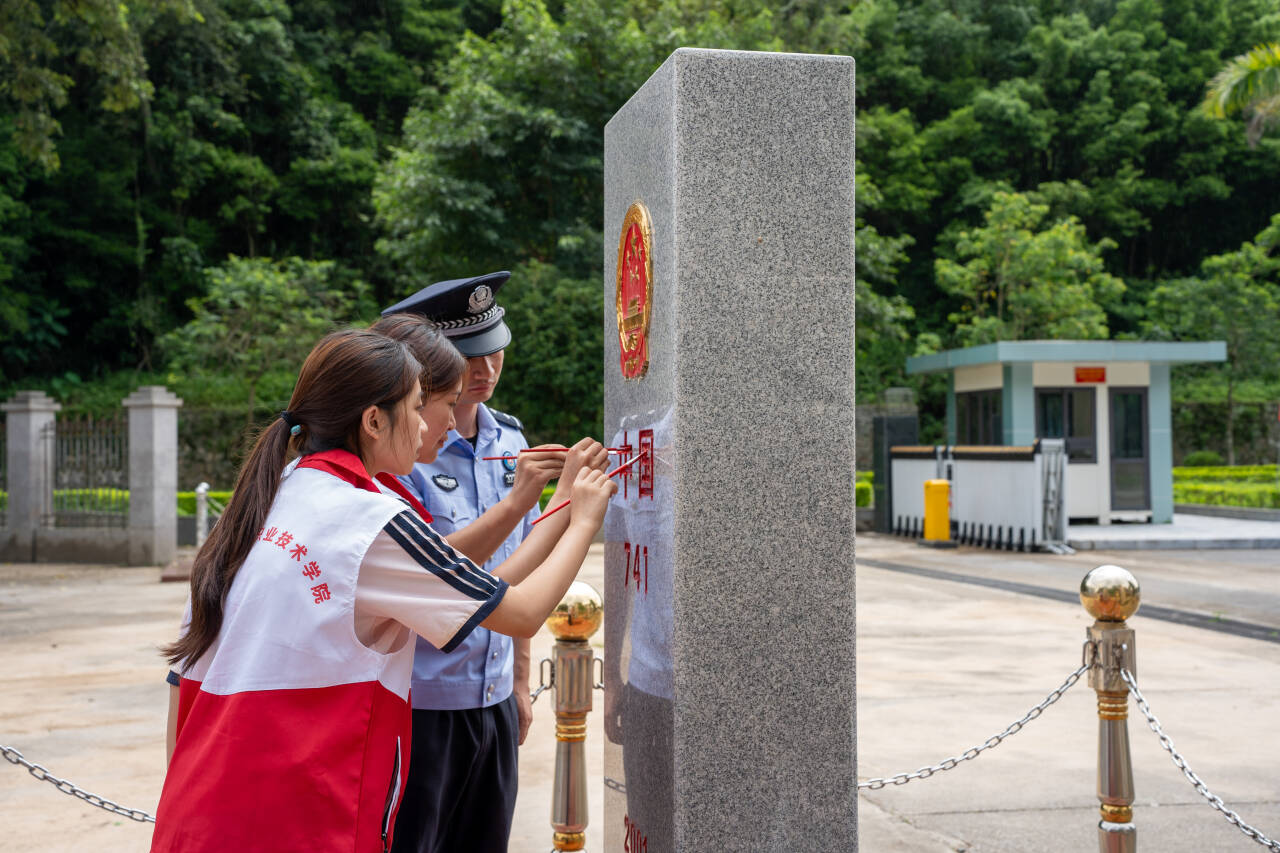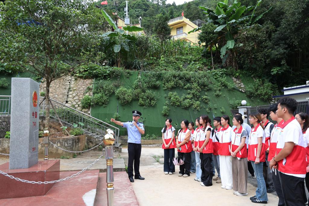 7月14日,实践团走进位于靖西市的龙邦口岸,开展“界碑为誓·青春戍边”爱国主义教育活动。通过我为祖国巡边、我为界碑描红、聆听戍边故事等活动,开展了一场意义深远的“行走的思政课”。
