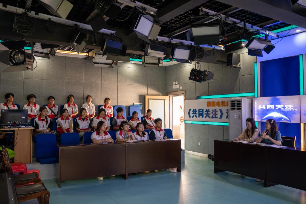 实践团成员在德保县融媒体中心演播室参观学习