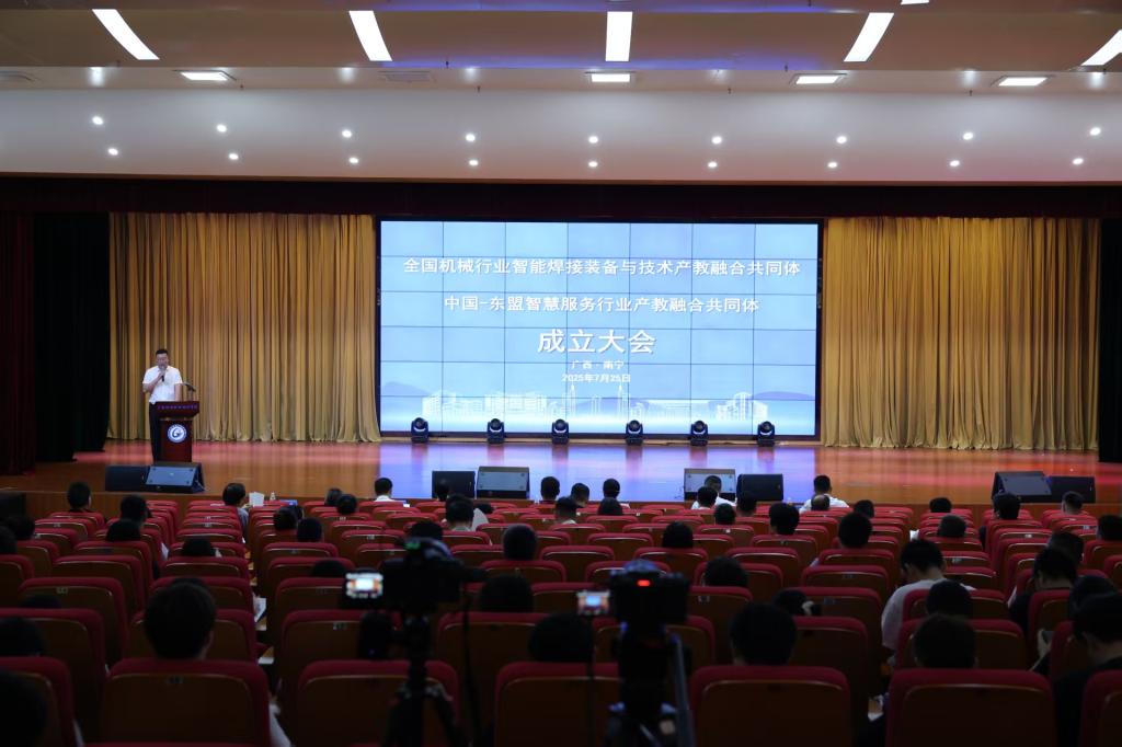 7月25日,全国机械行业智能焊接装备与技术产教融合共同体、中国—东盟智慧服务行业产教融合共同体成立大会在学校博远楼小礼堂召开。