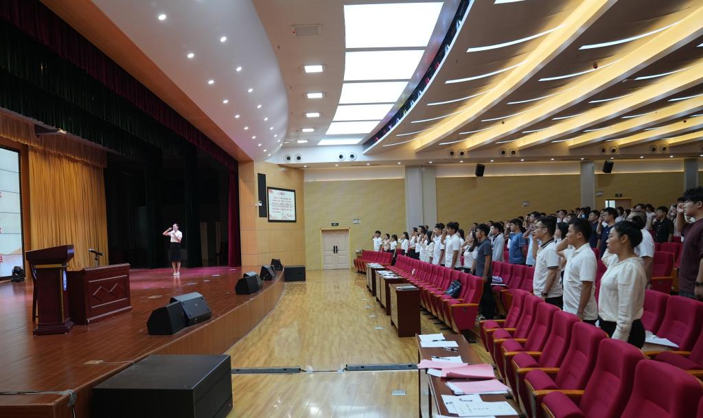 人事处副处长李哲带领全体新员工进行入职宣誓
