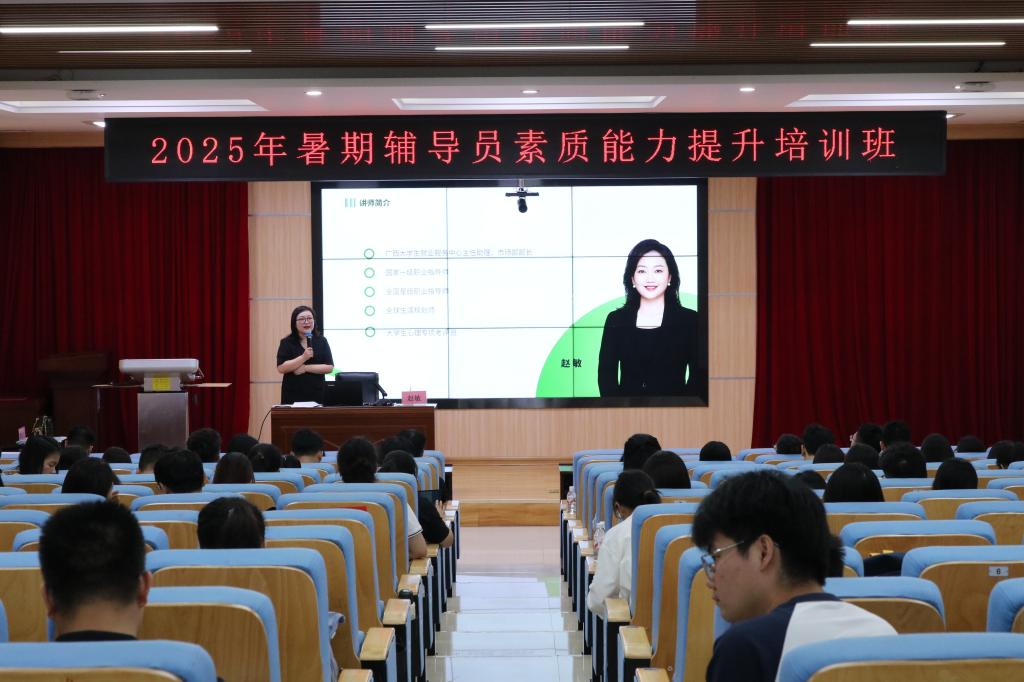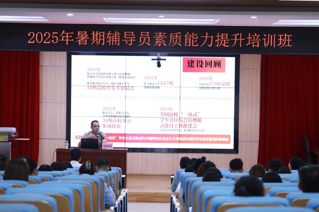 为深入贯彻落实立德树人根本任务,全面提升辅导员队伍的专业素养和综合能力,7月24日至26 日,学校举办暑期辅导员素质能力提升培训班。校长吴世先作专题报告,副校长林胜作开班动员讲话。培训班邀请区内外多位专家作专题辅导。学员们通过理论学习、素质拓展实践、案例分享、小组研讨等形式“充电蓄能”,全面提升辅导员专业素养和履职效能。