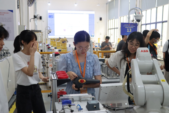 作为工科特色院校,学院特别安排师生参观学校智能制造实训基地。学员们近距离观察工业机器人、多轴加工等先进技术的实操应用,并亲手参与智能产品设计实践,直观理解广西从传统工艺到智能制造的产业升级之路。